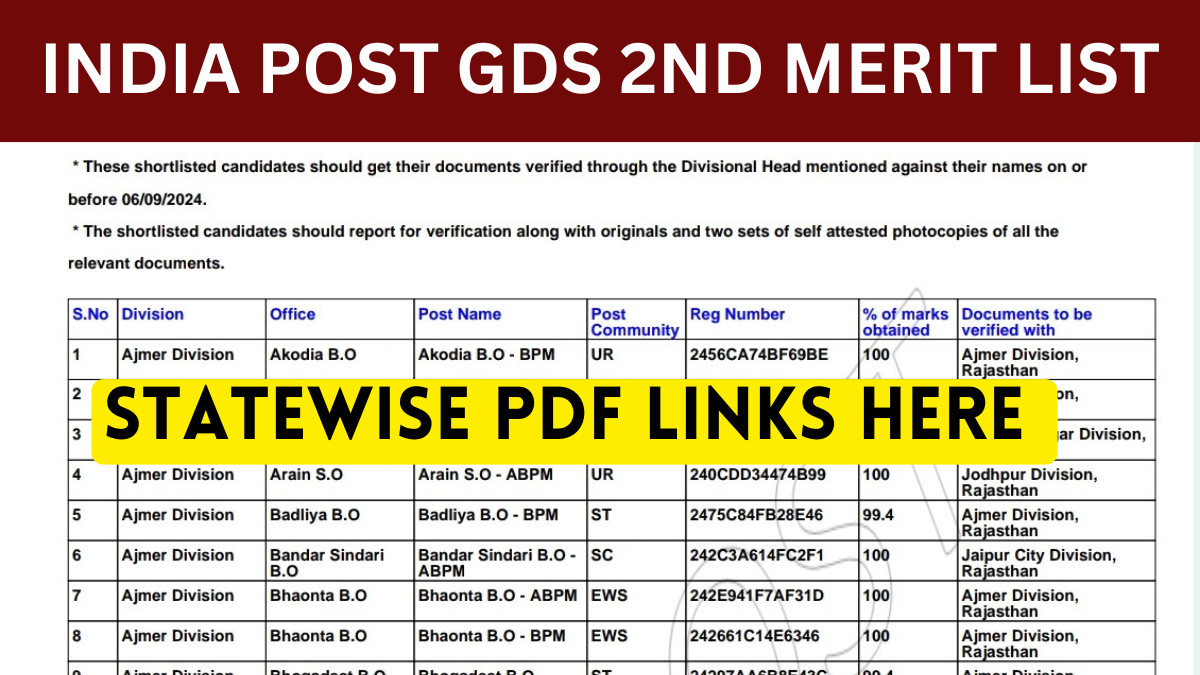 India Post GDS 2nd Merit List: Check Statewise Merit List PDF Links