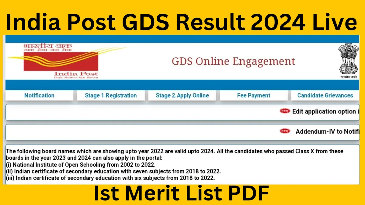 India Post GDS Result 2024 Live: Merit List PDF Link Expected Shortly